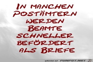 | In manchen Postämtern, werden Beamte schneller befördert als Bild (115.6 KB) 1Lustiges → klasse Sprüche und Witze | Lustiges → klasse Sprüche und Witze | 01.05.23-11:58 | ||