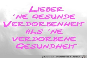 | Lieber 'ne gesunde Verdorbenheit als 'ne verdorbene Gesundhe Bild (49.32 KB) 9Lustiges → klasse Sprüche und Witze | Lustiges → klasse Sprüche und Witze | 13.03.23-09:49 | ||