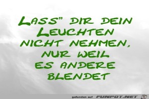 | Lass dir dein Leuchten nicht nehmen Bild (46.41 KB) 7Herziges → Sprüche | Herziges → Sprüche | 03.04.23-11:26 | ||