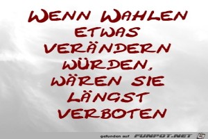 | Wenn Wahlen etwas verändern würden, wären sie längst verbote Bild (123.26 KB) 8Lustiges → klasse Sprüche und Witze | Lustiges → klasse Sprüche und Witze | 25.12.22-10:50 | ||