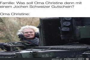 | Was macht Oma Christine? Bild (72.69 KB) 6Lustiges → witzige Bilder | Lustiges → witzige Bilder | 09.02.22-08:29 | ||