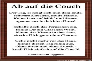 | Ab auf die Couch Bild (51.64 KB) 4Lustiges → klasse Sprüche und Witze | Lustiges → klasse Sprüche und Witze | 02.08.22-14:20 | ||