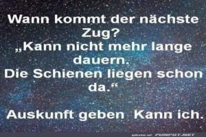 | Humor über Zugverspätung Bild (80.24 KB) 1Lustiges → klasse Sprüche und Witze | Lustiges → klasse Sprüche und Witze | 10.03.-06:02 | ||