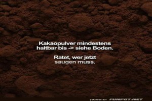 | Kakaopulver auf dem Boden verschüttet Bild (47.05 KB) 12Lustiges → klasse Sprüche und Witze | Lustiges → klasse Sprüche und Witze | 13.03.-08:13 | ||