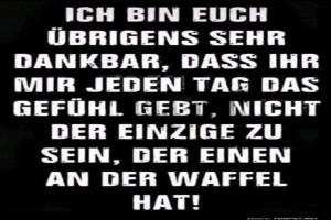 | Dankbarkeit für verrückte Freunde Bild (110.64 KB) 2Lustiges → klasse Sprüche und Witze | Lustiges → klasse Sprüche und Witze | 19.03.-12:27 | ||