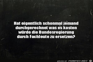| Bundesregierung aus Fachleuten Bild (77.29 KB) 17Lustiges → klasse Sprüche und Witze | Lustiges → klasse Sprüche und Witze | 15.04.21-09:41 | ||