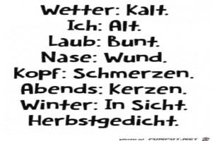 | Herbstgedicht Bild (62.71 KB) 26Lustiges → klasse Sprüche und Witze | Lustiges → klasse Sprüche und Witze | 28.09.23-18:36 | ||