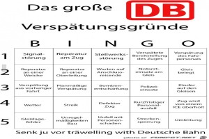 | Verspätungsbingo der deutschen Bahn Bild (211.97 KB) 16Lustiges → witzige Bilder | Lustiges → witzige Bilder | 16.05.23-19:19 | ||