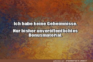 |  3 |       | Keine Geheimnisse, nur Bonusmaterial Bild (158.8 KB)  3 Lustiges → klasse Sprüche und Witze | Lustiges → klasse Sprüche und Witze | 23.02.-10:35 | ||