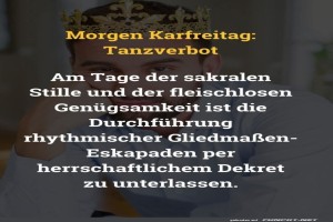 | Tanzverbot: Königlicher Stillstand Bild (115.19 KB) Lustiges → klasse Sprüche und Witze | Lustiges → klasse Sprüche und Witze | heute-11:49 | |||