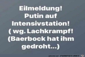 | Putin hatte Lachkrampf Bild (33.92 KB) 6Lustiges → klasse Sprüche und Witze | Lustiges → klasse Sprüche und Witze | 08.01.22-10:01 | ||