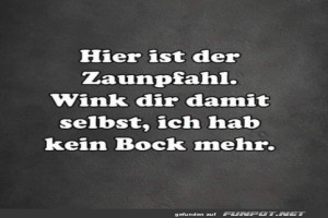 |  5  1 |       | Der Zaunpfahl Bild (54.43 KB)  5  1 Lustiges → klasse Sprüche und Witze | Lustiges → klasse Sprüche und Witze | 06.06.24-17:43 | ||