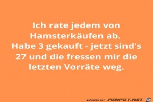 | Ich rate von Hamsterkäufen ab Bild (31.82 KB) 19Lustiges → klasse Sprüche und Witze | Lustiges → klasse Sprüche und Witze | 19.05.21-09:09 | ||