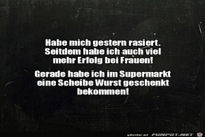| Bekomme wieder eine Wurst geschenkt Bild (87.48 KB) 14Lustiges → klasse Sprüche und Witze | Lustiges → klasse Sprüche und Witze | 22.07.21-14:00 | ||