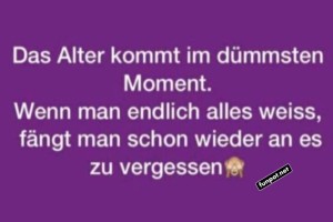 | Das Alter und das Vergessen Bild (45.54 KB) 7Lustiges → klasse Sprüche und Witze | Lustiges → klasse Sprüche und Witze | 10.04.-19:37 | ||