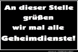 | Gruß an die Geheimdienste Bild (22.49 KB) 2Lustiges → klasse Sprüche und Witze | Lustiges → klasse Sprüche und Witze | 13.03.-09:50 | ||