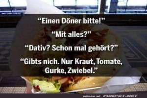 | Dönerbestellung mit humorvollem Dialog Bild (67.21 KB) 4Lustiges → klasse Sprüche und Witze | Lustiges → klasse Sprüche und Witze | 21.01.-11:18 | ||