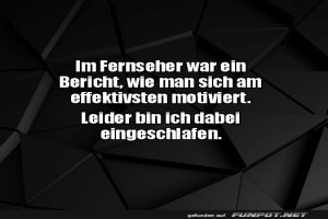 | Motivation im TV: Leider eingeschlafen Bild (49.61 KB) 1Lustiges → klasse Sprüche und Witze | Lustiges → klasse Sprüche und Witze | 30.01.-10:26 | ||