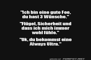 | Lustiger Dialog mit der guten Fee Bild (37.8 KB) 2Lustiges → klasse Sprüche und Witze | Lustiges → klasse Sprüche und Witze | 15.02.-09:46 | ||