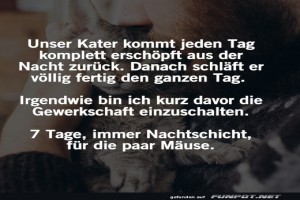 | Erschöpfter Kater nach Nachtschicht Bild (91.46 KB) 1Lustiges → klasse Sprüche und Witze | Lustiges → klasse Sprüche und Witze | 15.02.-09:22 | ||