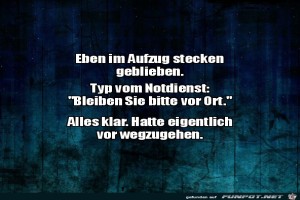 | Im Aufzug stecken geblieben Bild (95.79 KB) 10Lustiges → klasse Sprüche und Witze | Lustiges → klasse Sprüche und Witze | 11.04.21-08:43 | ||