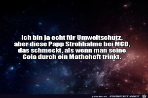 | Papp-Strohhalme sind Mist Bild (93.7 KB) 5Lustiges → klasse Sprüche und Witze | Lustiges → klasse Sprüche und Witze | 18.08.22-14:59 | ||