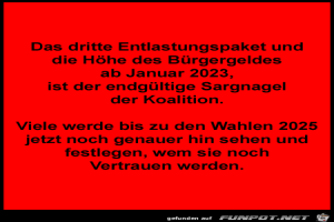 | 3. Sargnagel der Koalition Bild (19 KB) 1Herziges → Nachdenkliches | Herziges → Nachdenkliches | 05.09.22-17:28 | |