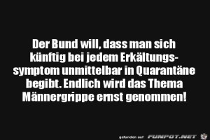 | Männergrippe Bild (35.13 KB) 15Lustiges → klasse Sprüche und Witze und Corona | Lustiges → klasse Sprüche und Witze und Corona | 17.11.20-08:53 | ||
