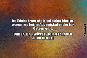 | Kind fragt nach Oster-Adventskalender Bild (522.78 KB) 5Lustiges → klasse Sprüche und Witze | Lustiges → klasse Sprüche und Witze | 26.03.-13:24 | ||