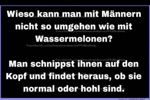 | Wieso Männer wie Wassermelonen behandeln? Bild (99.88 KB) 6Lustiges → klasse Sprüche und Witze | Lustiges → klasse Sprüche und Witze | 07.03.-14:44 | ||