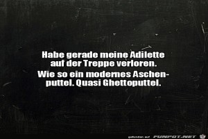 | Adilette verloren Bild (90.26 KB) 1Lustiges → klasse Sprüche und Witze | Lustiges → klasse Sprüche und Witze | 27.09.22-14:15 | ||