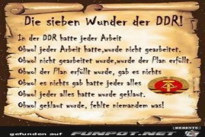 | Die sieben Wunder der DDR ! Bild (24.7 KB) 5Lustiges → klasse Sprüche und Witze | Lustiges → klasse Sprüche und Witze | 26.08.21-15:25 | ||