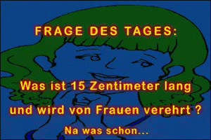 | Darf man eigentlich noch Oma sagen ? Bild (16.13 KB) 7Lustiges → klasse Sprüche und Witze | Lustiges → klasse Sprüche und Witze | 17.08.21-09:39 | ||
