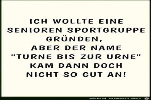 | Turne bis zur Urne Bild (60.47 KB) 8Lustiges → klasse Sprüche und Witze | Lustiges → klasse Sprüche und Witze | 15.09.21-12:18 | ||