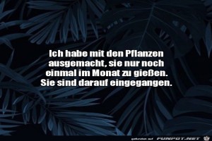 | Die Pflanzen sind darauf eingegangen Bild (68.64 KB) 10Lustiges → klasse Sprüche und Witze | Lustiges → klasse Sprüche und Witze | 24.01.21-16:03 | ||