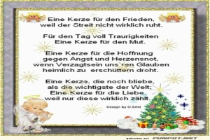 | Eine Kerze für den Frieden Bild (73.07 KB) 7Herziges → Sprüche | Herziges → Sprüche | 12.12.24-18:45 | ||