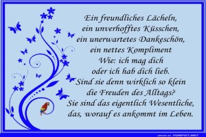 | Die kleinen Freuden des Alltags Bild (162.34 KB) 3Herziges → Sprüche | Herziges → Sprüche | 25.11.23-09:57 | ||