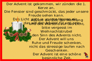 | Einen schönen ersten Advent Bild (318.28 KB) 6Herziges → ich wünsche dir... | Herziges → ich wünsche dir... | 30.11.23-18:37 | ||