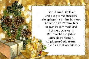| Weihnachtswünsche Bild (348.78 KB) 18Herziges → Gedichte | Herziges → Gedichte | 21.12.24-11:26 | ||