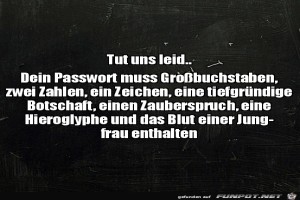 | Dein Passwort Bild (93.62 KB) 14Lustiges → klasse Sprüche und Witze | Lustiges → klasse Sprüche und Witze | 23.05.23-09:06 | ||