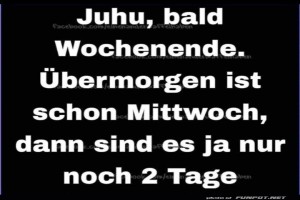 | Freude über das kommende Wochenende Bild (51.46 KB) 6Lustiges → klasse Sprüche und Witze | Lustiges → klasse Sprüche und Witze | 28.05.-12:40 | ||