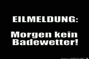|  2 |       | Morgen kein Badewetter Bild (39.08 KB)  2 Lustiges → klasse Sprüche und Witze | Lustiges → klasse Sprüche und Witze | 27.01.24-11:52 | ||