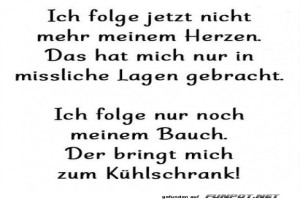| Folge meinem Bauch Bild (50.5 KB) 4Lustiges → klasse Sprüche und Witze | Lustiges → klasse Sprüche und Witze | 22.07.24-07:55 | ||