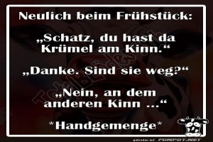 |  1  1 |       | Witz über Krümel am Kinn Bild (49.98 KB)  1  1 Lustiges → klasse Sprüche und Witze | Lustiges → klasse Sprüche und Witze | 10.03.-18:01 | ||