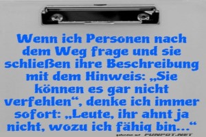 | Weghinweis: Ein humorvolles Missverständnis Bild (119.32 KB) 4Lustiges → klasse Sprüche und Witze | Lustiges → klasse Sprüche und Witze | 11.03.-09:14 | |