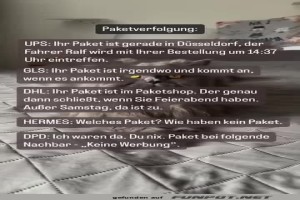 | Die Paketverfolgung Bild (31.87 KB) 17Lustiges → klasse Sprüche und Witze | Lustiges → klasse Sprüche und Witze | 04.04.-00:05 | ||