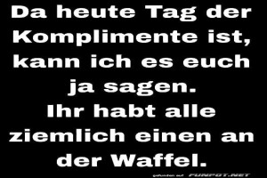 |  2 |       | Tag der Komplimente mit Humor Bild (37.69 KB)  2 Lustiges → klasse Sprüche und Witze | Lustiges → klasse Sprüche und Witze | 07.06.-16:41 | ||