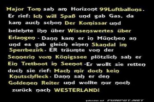 | Major Tom und der wilde Musiktrip Bild (87.75 KB) Lustiges → klasse Sprüche und Witze | Lustiges → klasse Sprüche und Witze | 31.12.25-08:53 | |||