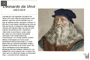 | Leonardo da Vinci Powerpoint (3.29 MB) 2schöne Digitalbilder → Kunst → Maler Da ich selbst einmal gezeichnet-gemalt habe, habe ich mit 50 ausgewählten Künstler, die in den letzten 5 Jahrhunderten einzigartige Kunstwerke erschufen, eine PowerPoint-Serie erstellt. (Nr. 03, Leonardo da Vinci, 1452-1519) | schöne Digitalbilder → Kunst → Maler | 25.02.23-09:01 | regulus | |