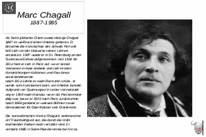 | Marc Chagall Powerpoint (3.65 MB) 1schöne Digitalbilder → Kunst → Maler Da ich selbst einmal gezeichnet-gemalt habe, habe ich mit 50 ausgewählten Künstler, die in den letzten 5 Jahrhunderten einzigartige Kunstwerke erschufen, eine PowerPoint-Serie erstellt. (Nr. 44, Marc Chagall, 1887-1985) | schöne Digitalbilder → Kunst → Maler | 25.02.23-09:01 | ||